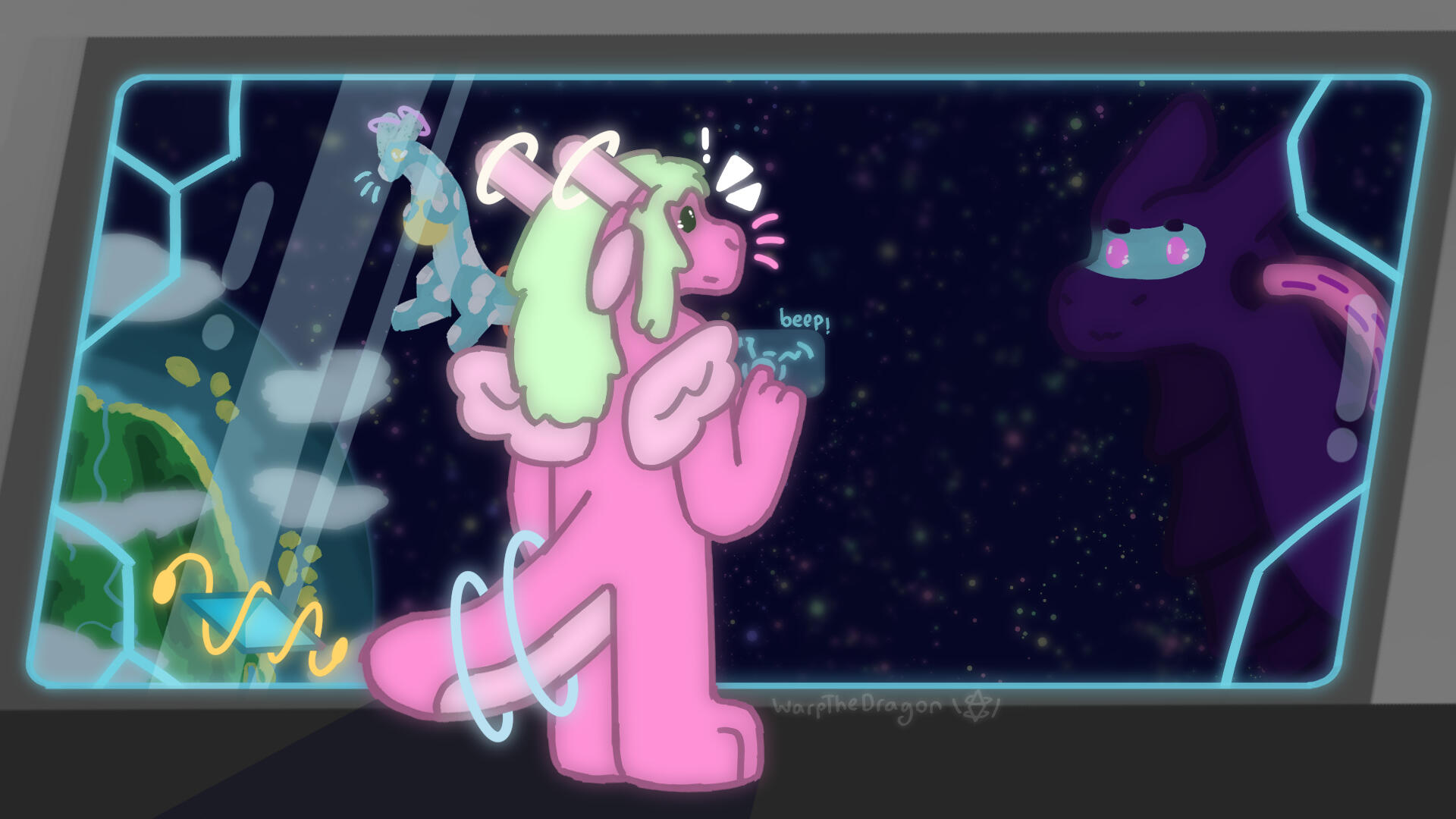 "Just press your window button and take a look for yourself.""Aight, bet." Cass mutters under her breath, and walks towards her living quarter's closed window.With a beep, the window turns transparent, revealing the vast expanse of space, and an unexpected guest.
